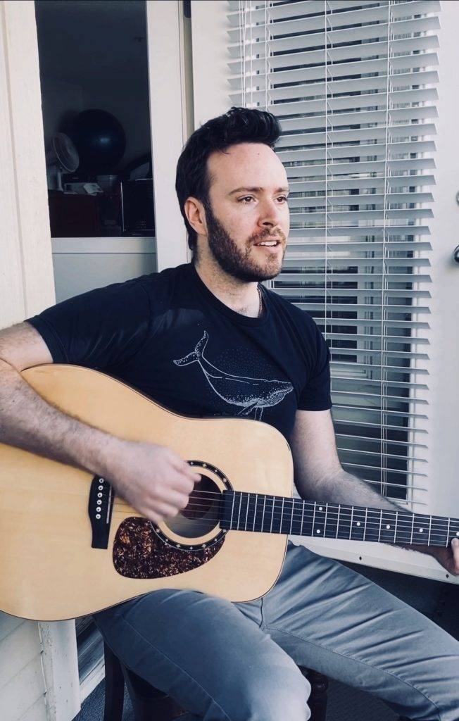 - “I am a local musician, and like everyone, all of my public activities were cancelled due to the pandemic. As a way of adapting and connecting musically with people under the circumstances, I’ve offered live-streaming concerts and compiled a music video of people dancing at home in quarantine. This is [a screenshot of ] me rehearsing on my balcony for my first live-streaming concert.” By Matt Stern