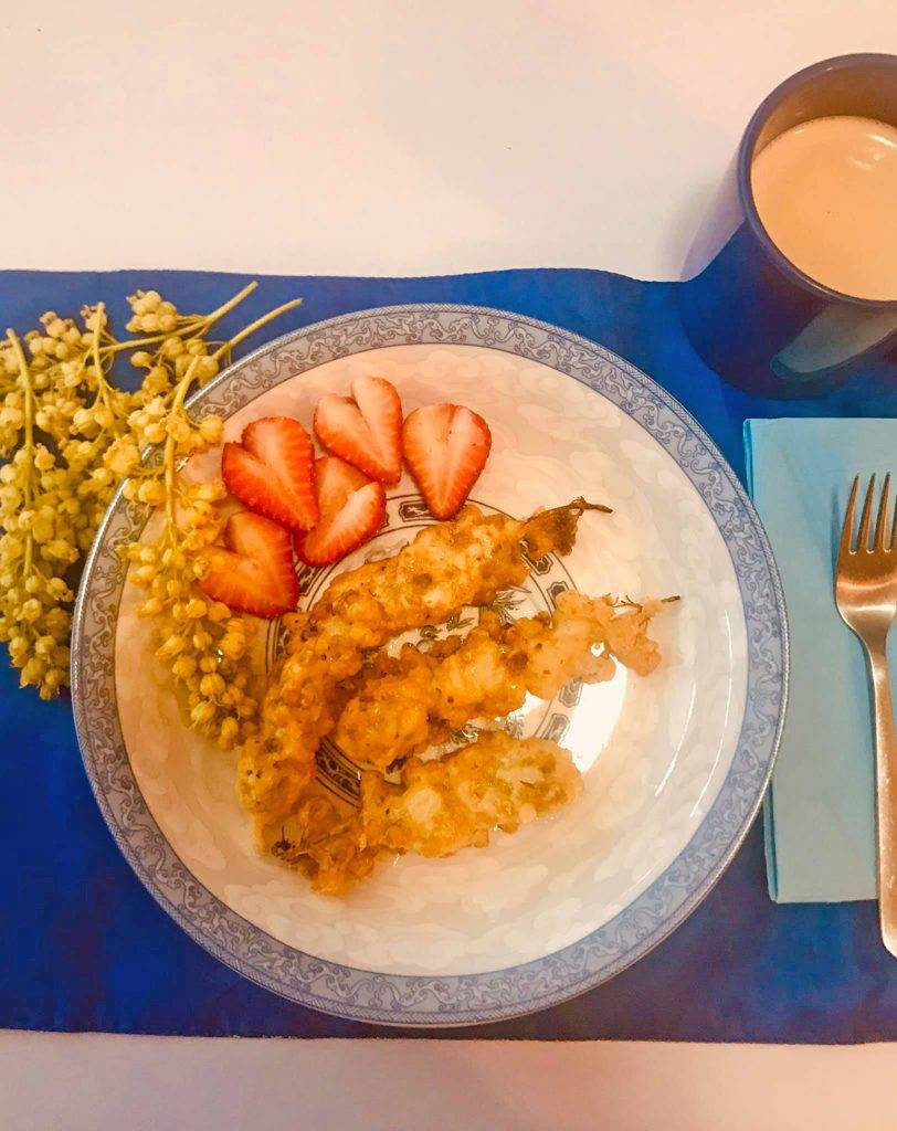 - “Bigleaf Maple blossom fritters made from trees in my back yard — hearts going out to all the world in love.” By Gloria Egeli