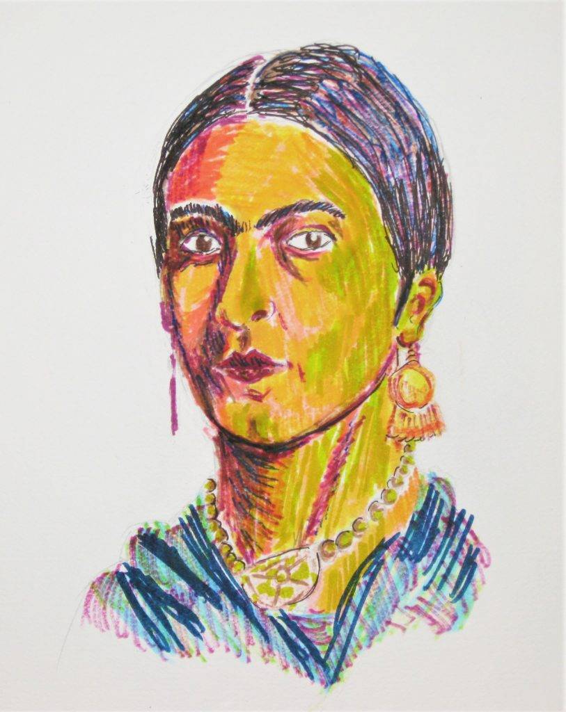 - “Most of my creativity for the past 50 years has been in theatre. Of course, now most of the theatre work has been suspended for the time being. So I decided to revive a creative passion from when I was seven years old: drawing and painting. My latest piece of artwork is pictured here; it is a portrait of Frida Kahlo, done with felt pen.” By Wendy Merk