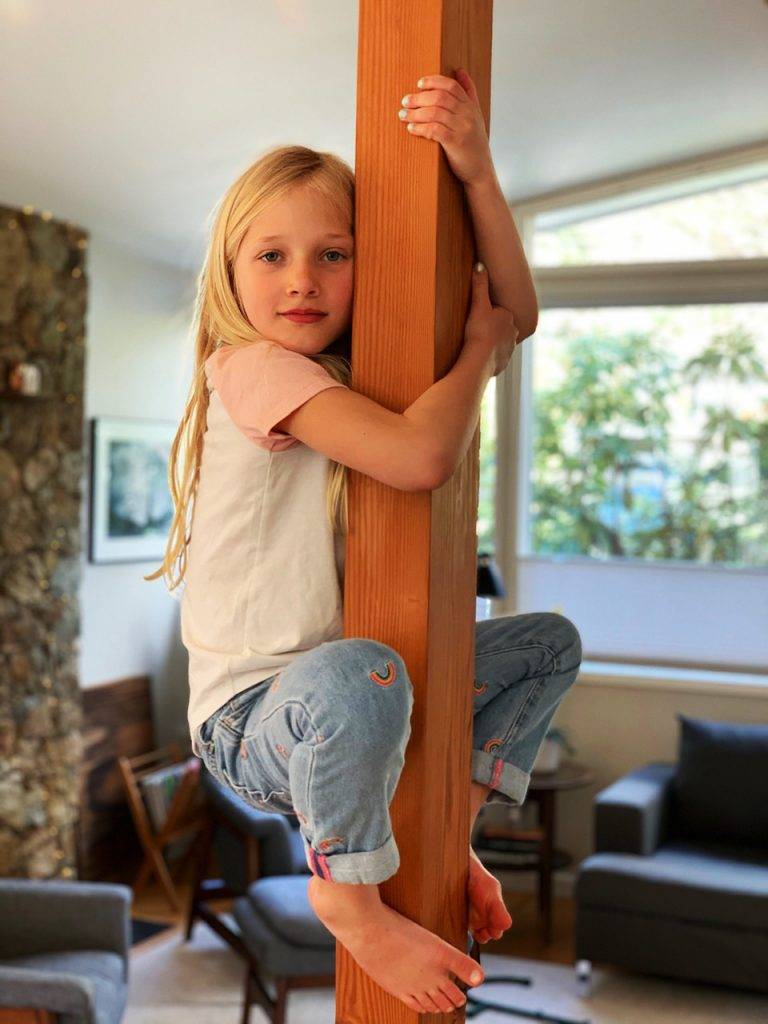 - “This is a picture of my seven year old, literally climbing the walls of our house. House is a mess, vacuum out, dishwasher door open, cushions all around, Dad probably in the middle of some video call. It’s funny, and real, and what makes moms want to pull their hair out!” By Tonia D’Introno