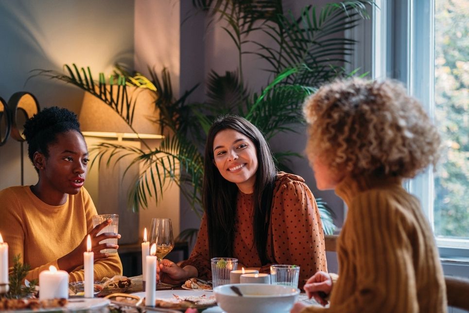 - Create a festive ambience with décor, music, sparkly lights and scented candles.