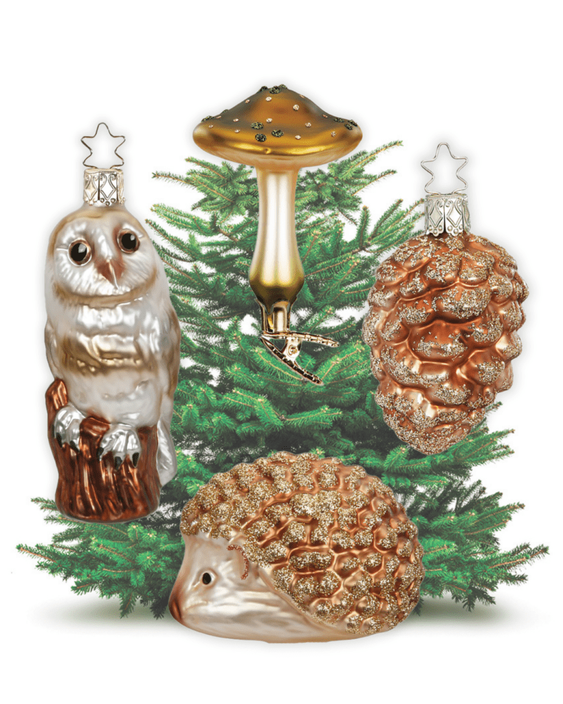 But among the hottest trends this year are ornaments that could have been spotted on a walk through the woods. Think: magical mushrooms, acorns, chestnuts, pine cones, hedgehogs and barn owls, as well as prettily decorated balls all in warm, autumnal shades of bronze, copper, ochre and the like.
